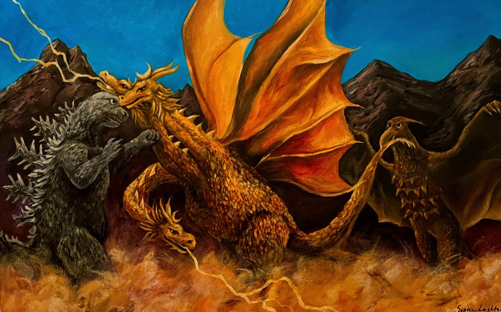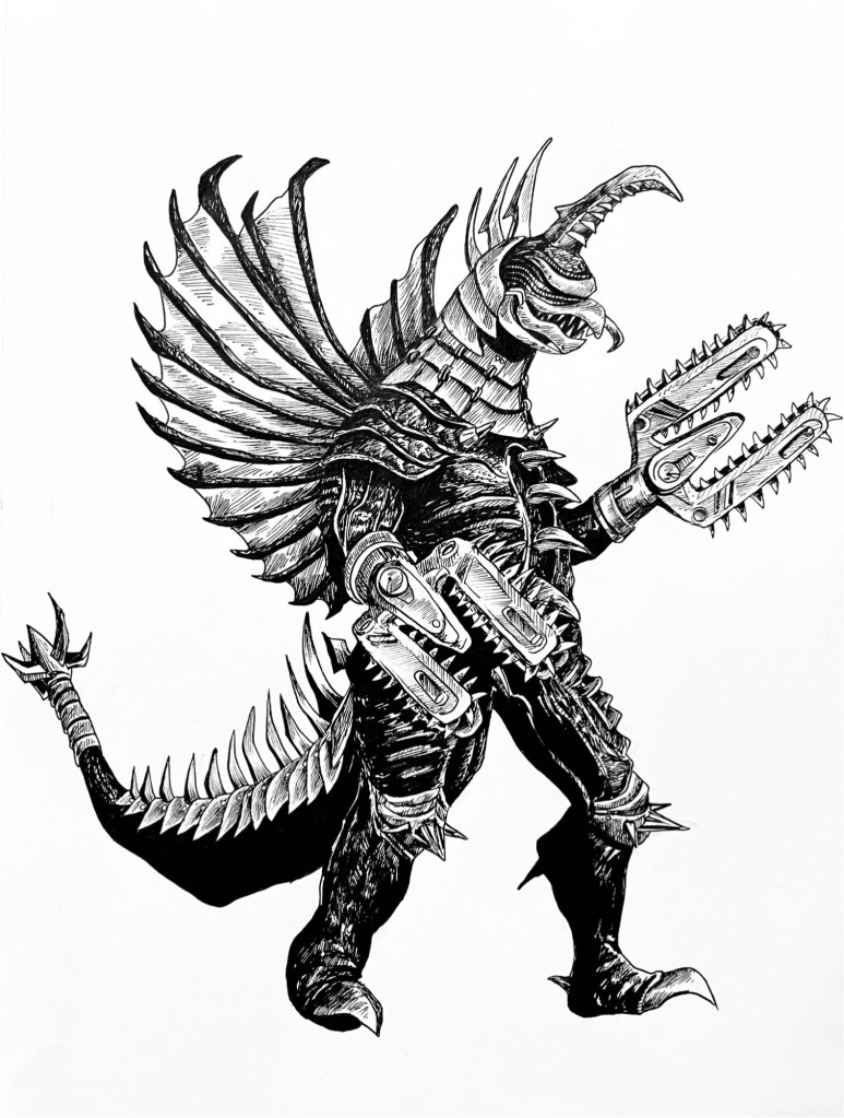 Burning Godzilla, digital, 2025Gamera, digital, 2025Titanosaurus, digital, 2025Destoroyah, digital, 2025Ebirah, digital, 2025Kong, digital, 2025Manda, digital, 2025Biollante, digital, 2025Little Godzilla, digital, 2025Baragon, digital, 2025Gigan, digital, 2024Godzilla ’64, digital, 2024Anguirus, digital, 2024Mothra, digital, 2024Mechagodzilla, digital, 2024Ghidorah, digital, 2024Rodan, digital, 2024Hedorah, digital, 2024Son of Godzilla, Acrylic on canvas, 9×11 in. 2025Godzilla vs Mothra, Acrylic on canvas, 12×18 in. 2025Shin Godzilla, ink pen on paper, 11×8.5 in. 2025Godzilla vs Mothra, Acrylic on canvas, 9×9 in. 2025Final Wars Chainsaw Gigan, ink pen on paper, 11×8.5 in. 2024Godzilla Minus One, ink pen on paper, 8.5×11 in. 2024Invasion of the Astro Monster, Acrylic on canvas, 12×19 in. 2024Heisei Godzilla, ink pen on paper, 11×8.5 in. 2024King of the Monsters, Acrylic on paper, 11×18 in. 2020